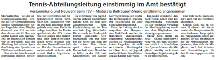 Tennis-Abteilungsleitung einstimmig bestätigt